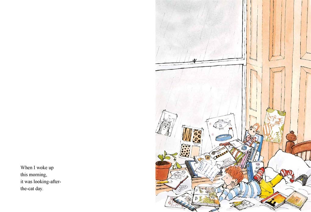 Grandad and Boy look after a cat for a friend. Boy does lots of reading up about what cats like, but the cat is having none of it. And then it runs off into the wild, leading Grandad and Boy into a wild jungle fantasy adventure of their own.