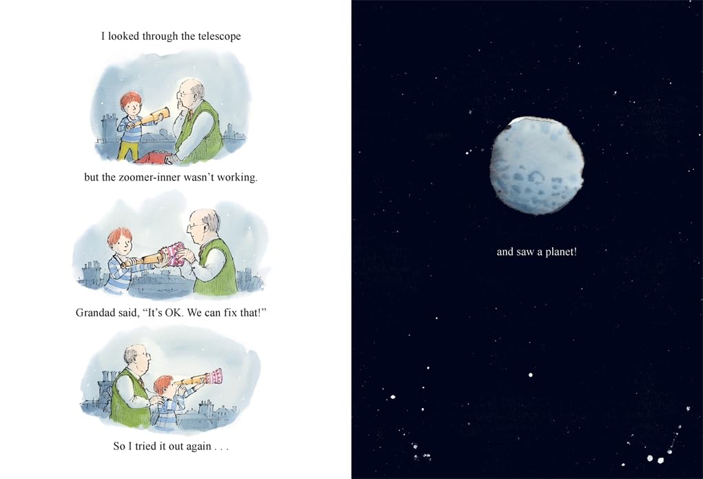 ZOOM! sees them blasting off into space in their homemade rocket to mend a broken module and rescue two stranded astronauts. A delightful family read, exploring creativity, celebrating recycling and deftly introducing subtle science and engineering facts - all the while following the enduring and heart-warming Boy-Grandad relationship.